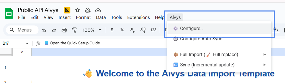 Alvys Public API → Google Sheets Integration — Quick Start Guide